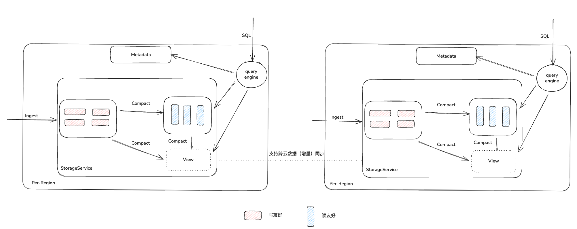 分别使用行存和列存写到磁盘后的格式大致如下