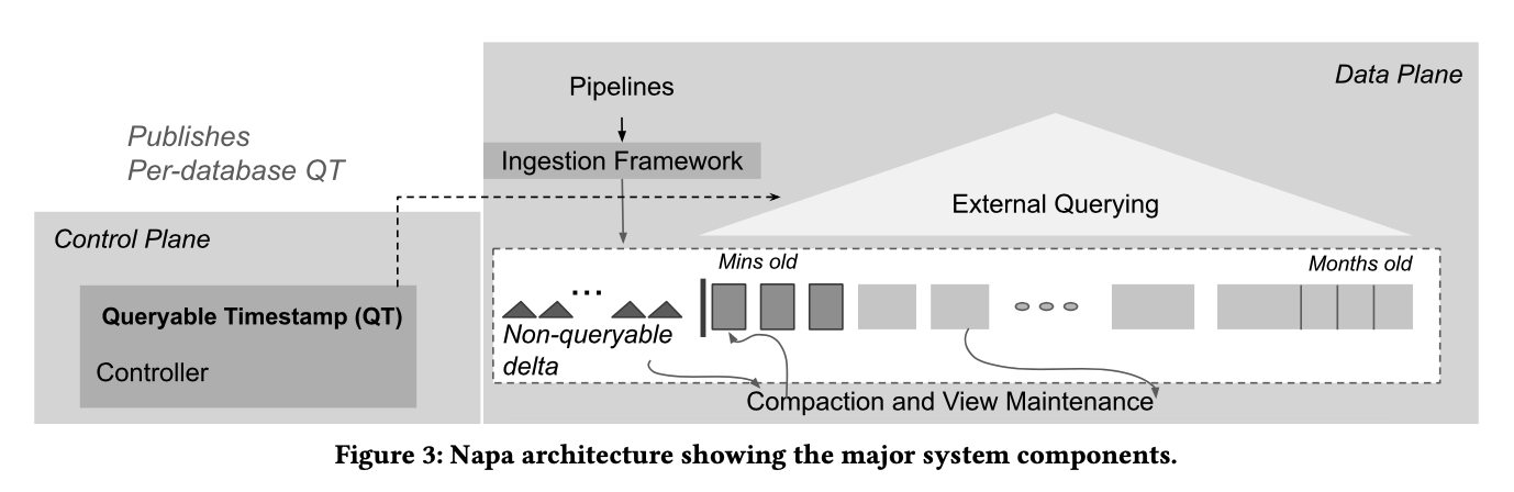 Napa 一文提出了经常被提到的不可能三角:Data fresshness,Resource cost 以及 Queyr performance,三者最多只能满足两个。Napa 的主要设计包括